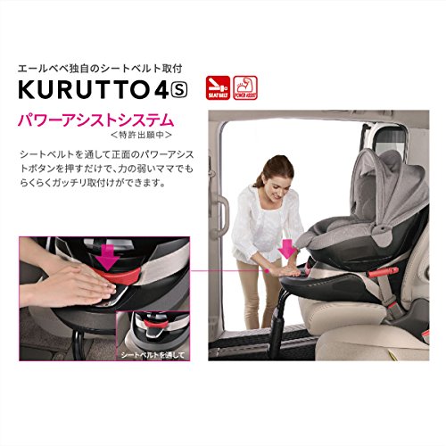 エールベベ 『日本製・安心トリプル保証付』回転型チャイルドシート クルット4sプレミアム 【シートベルト取付】 新生児から4歳用(360度 サイレントターン/ふわふわヘッドクッション/ワイドサンシェード/洗濯機で洗えるカバー) ナチュラルブラック AB865