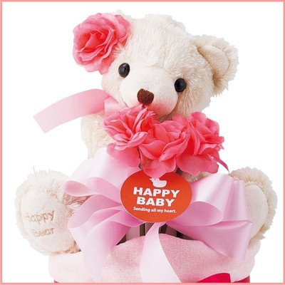 出産祝にとっても喜ばれるオムツケーキの贈り物。 人気NO.1の「パンパース」を一つずつ丁寧にフィルムで包装。 ふわふわタオルで包み、デコレーションケーキに見立てた可愛いおむつケーキ ケーキの上には可愛いくまのぬいぐるみが祝福してくれています。 安心・安全な贈り物をサプライズで演出 商品内容/オムツSサイズ×30、フェイスタオル×2、くまのぬいぐるみ×1 サイズ/おむつケーキ:約高さ430×ヨコ230×幅230mm、くまのぬいぐるみ:全長200mm、フェイスタオル:約タテ300×ヨコ760mm 素材/おむつ:パンパース紙、フェイスタオル:綿100% 箱寸法:280×280×570mm 生産国/日本国、オーストラリア、バングラディッシュ