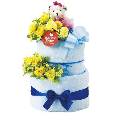 人気NO.1の「パンパース」を一つずつ丁寧にフィルムで包装し、ふわふわタオルで包み、デコレーションケーキに見立てた可愛いおむつケーキ ケーキの上には可愛いくまのぬいぐるみが祝福してくれています。 安心・安全な贈り物をサプライズで演出 サイズ/おむつケーキ:約230×230×370mm、くまのぐいぐるみ:全長140mm 素材/おむつ:パンパース紙おむつ36枚 箱寸法:250×250×400mm 総重量/1000g 生産国/日本国