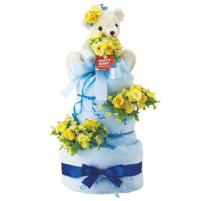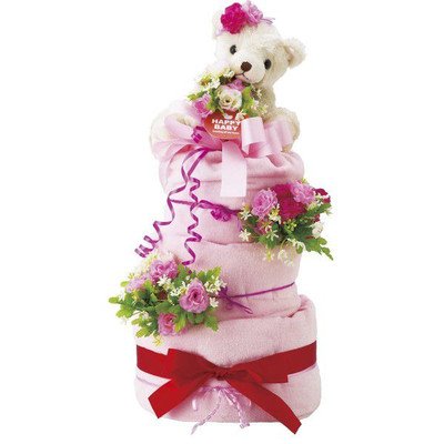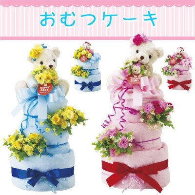 人気NO.1の「パンパース」を一つずつ丁寧にフィルムで包装し、ふわふわタオルで包み、デコレーションケーキに見立てた可愛いおむつケーキ ケーキの上には可愛いくまのぬいぐるみが祝福してくれています。 安心・安全な贈り物をサプライズで演出 サイズ/おむつケーキ:約270×270×560mm、くまのぐいぐるみ:全長190mm 素材/おむつ:パンパース紙おむつ60枚 箱寸法:280×850×600mm 総重量/1600g 生産国/日本国