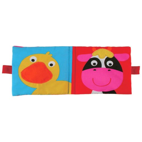 親しみやすい絵柄の赤ちゃんが喜ぶ布絵本です♪ 赤ちゃんが安心できる『笑った顔』の動物が大きく描かれたているのでご機嫌ななめの赤ちゃんをあやすのにピッタリ! パイル地、ベロア、フェルトなど多様な感触の素材で作られた、触るとパリパリ音がする布絵本。 布絵本をめくるたびに、親しみやすい絵柄があらわれて『いないいないばぁ』や『ひっぱりっこ』等の手遊びが楽しめます。 好奇心が育ち『くりかえし遊び』が楽しくなる赤ちゃんにピッタリのおもちゃです。 絵柄がシンプルなので、お父さん・お母さんもお話が自由に広がり、言葉遊びや語りかけ遊びが楽しくなります♪ 軽くて持ち運びがしやすいサイズなので、お出かけ時のおもちゃにもオススメです。 30℃のぬるま湯で手洗いができます。