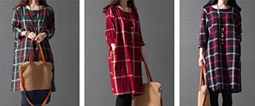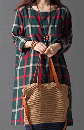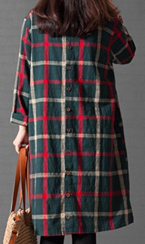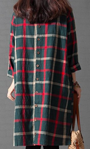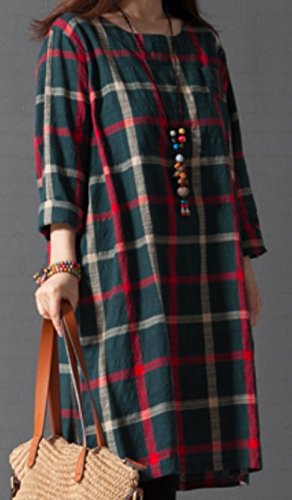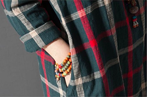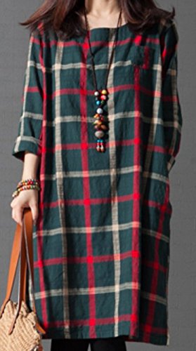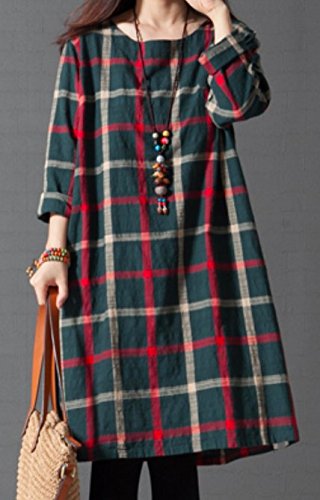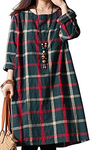 Li02gnM ガレット デ ロワ (galette des Rois) 大柄チェック バックボタン 可愛い 綿麻 Aライン ワンピ レディース 膝丈 春夏 長袖 チェック Aライン シンプル ネイビー ファッション カジュアル 森ガール コーデ万能 ゆったり Li02 (03.M, グリーン)
