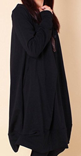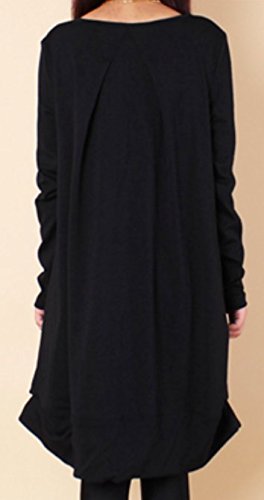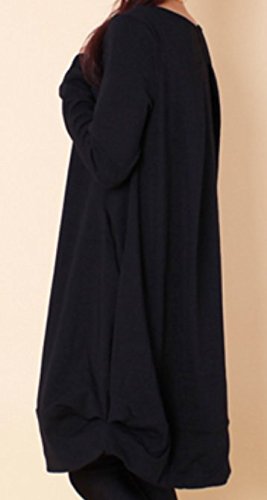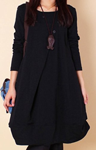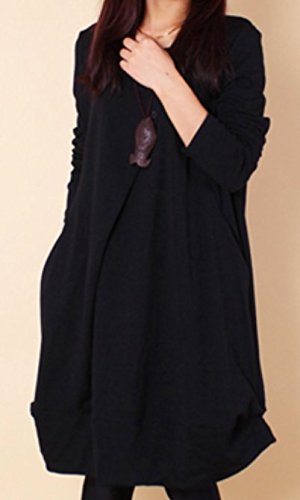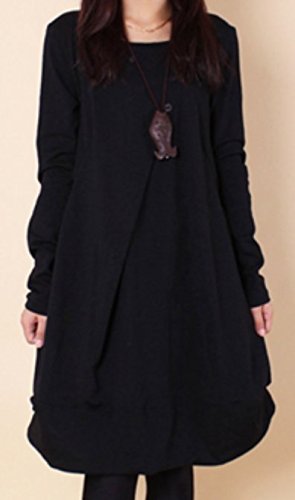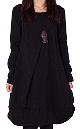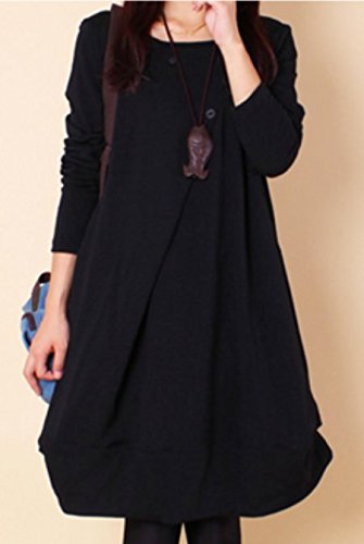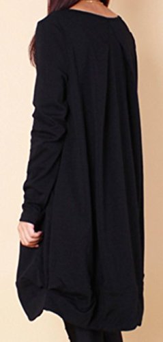 Li03bkM ガレット デ ロワ (galette des Rois) ワンピ ワンピース タック入 ゆったり コクーンシルエット ベーシック ラウンドネック ギャザー 無地 レディース Aライン チュニック 長袖 ゆったり 着やせ 部屋着 外出着 膝丈 シンプル 着痩せ 体型カバー 4色展開(黒、灰、茶、緑) M~XXL Li03 (03.M, ブラック)