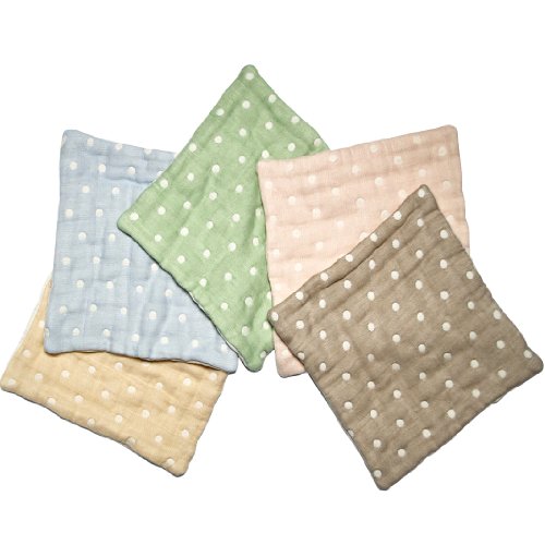 ★ふんわり柔らかな12重ガーゼハンカチの5枚セット。手作りのぬくもりと風合いをお楽しみ下さい。