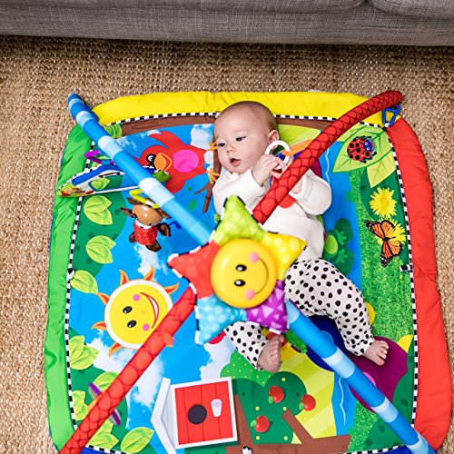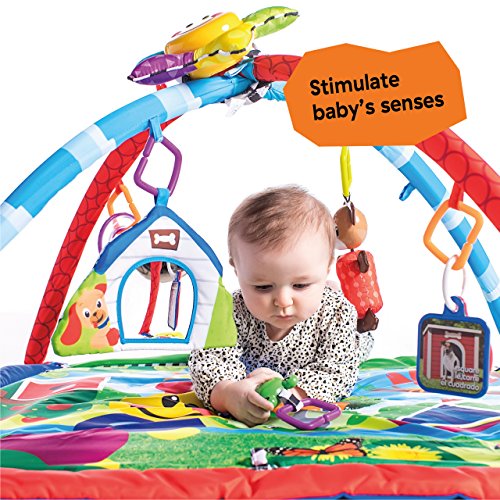 Let the discovery begin with Baby Einstein Caterpillar and Friends Activity Gym. This large, soft play mat features classical music, dancing lights, and six activities so baby will be engaged for hours of play. For tummy time, there is real life imagery on the washable play mat. The star-shaped electronic toy attaches to play gyms, carriers, and most cribs, and has baby motion activated lights and eight classical melodies. Additional toys include plush dog chime, ring rattle, discovery cards with real life imagery, frog rattle with bead chaser, leaf-shaped water-filled teether, and large baby safe mirror. Baby Einstein offers a wide range of developmental and entertainment products for babies and toddlers. What makes Baby Einstein products unlike any other is that they are created from a baby's point-of-view and incorporate a unique combination of real world objects, music, art, animals and nature--providing you with a fun way to introduce your baby to the big, beautiful new world around him.