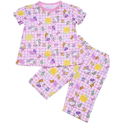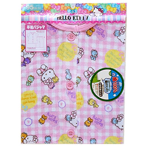 【本体綿100%】2017年 夏物 HELLO KITTY ハローキティ ニット楊柳 前開き総柄 半袖パジャマ ピンク◇95cm