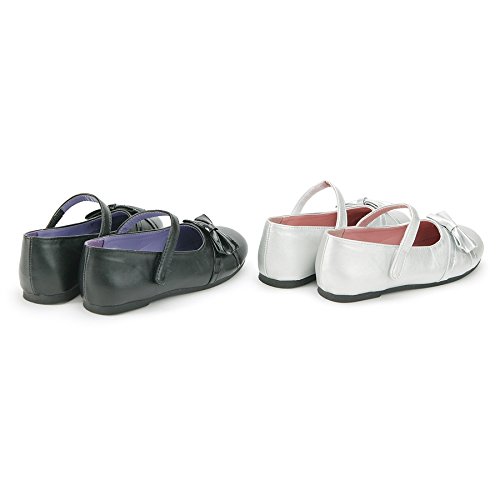 普段のお出かけからフォーマルまで対応できるシンプルな配色が使える1足!!オールマイティーなブラックとコーディネートがぐっとオシャレになるシルバーの2色展開。シルバーは以外にもカラータイツやソックス、デニムカジュアルとも好相性◎