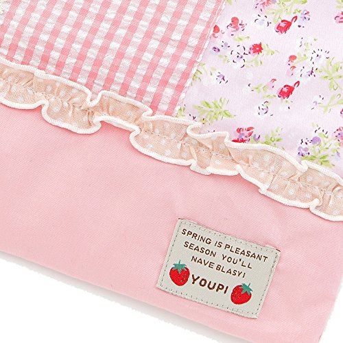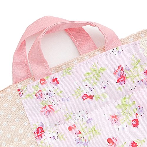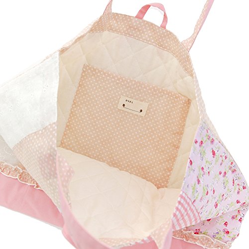 ドットやチェックに小花柄を組み合わせたおしゃれな総柄が魅力☆レース使いがかわいいアクセントに♪内側はキルト仕様にポケット付き!(^^)!