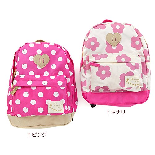 ベーシックで女の子らしいリュックサック♪何にでも合わせやすいドットのピンク☆大きなお花柄がかわいいキナリ☆女の子のお出かけは荷物がたくさん゚*☆収納力も抜群で、遠足などにもオススメです♪