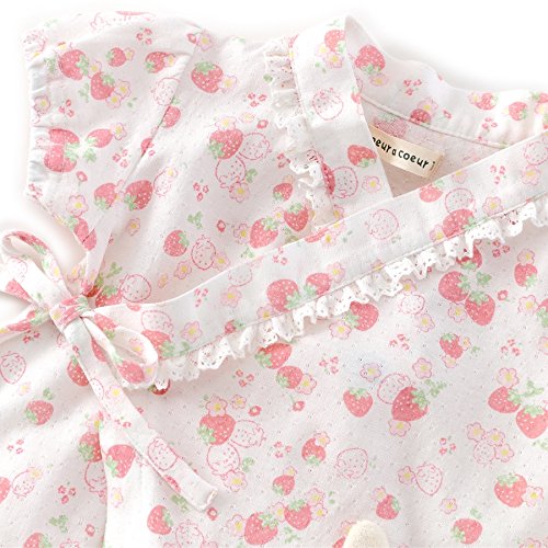 お祭りや夏のイベントにはクーラクールの甚平グレコがぴったり♪可愛らしいいちご柄にレース使いは女の子ならでは(*^▽^*)♪後にはシフォンのフリルがふんわり軽やか♪後ろ姿もラブリーです♪