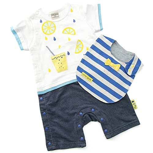 セット内容:ロンパスグレコ ( オフホワイト) ・ スタイ (ブルー)