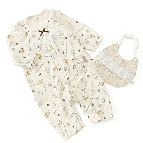 セット内容:カバーオール (オフホワイト) ・ スタイ (ピンク)