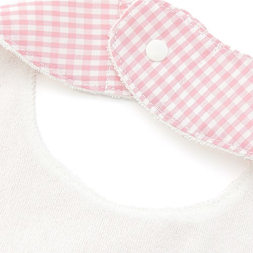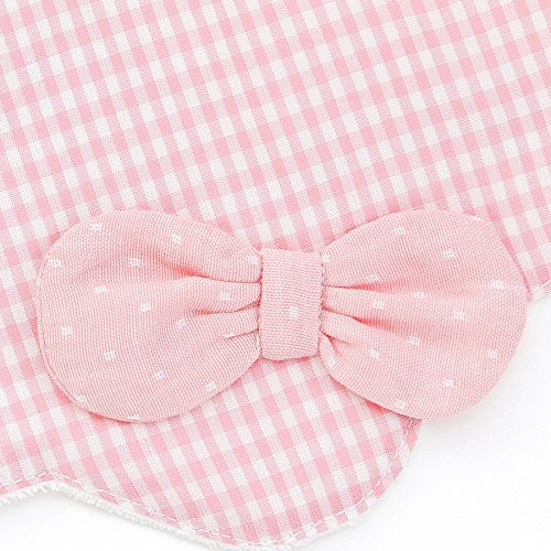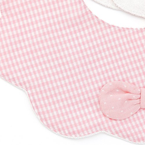 まるで花びらを模ったような形のスタイ♪大きめのドット柄リボンがとてもキュート☆.+。スタイの裏側は肌触りのよいパイルを使用。