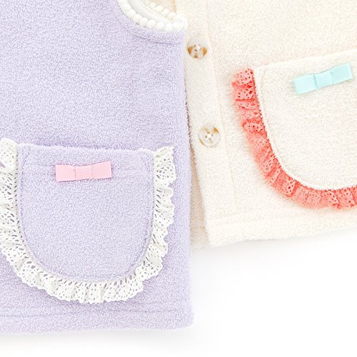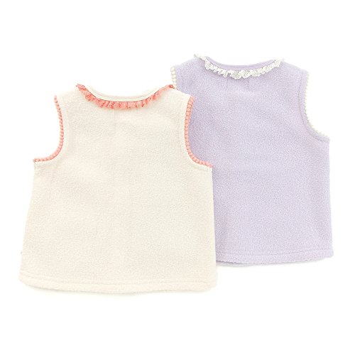 パイルの裏側に起毛をかけたふんわりやわらか素材は、寒い冬にピッタリ♪明るいカラーにレース使いをプラスした可愛いベスト♪