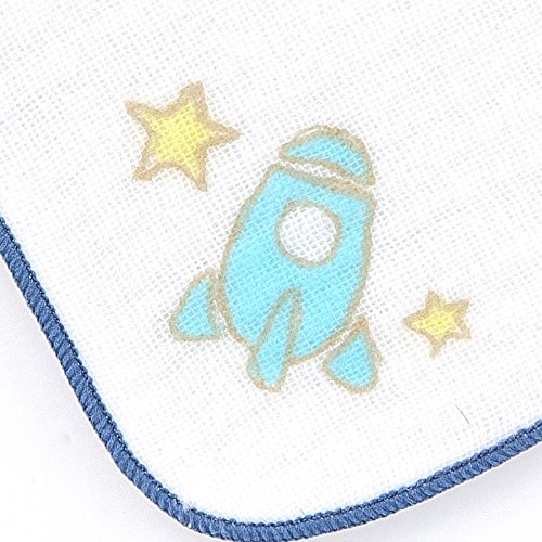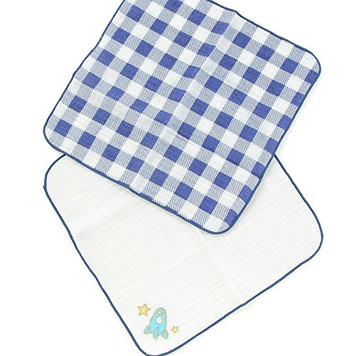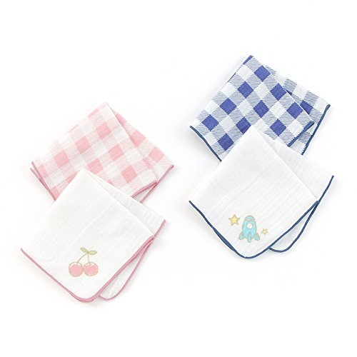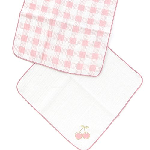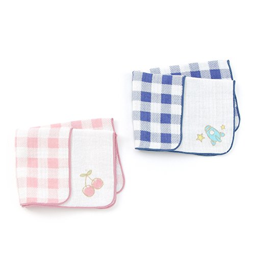 チェック柄と、ワンポイントのチェリー柄とロケット柄の2枚組みハンカチ♪ふんわり柔らかなガーゼ素材が肌にもやさしい♪