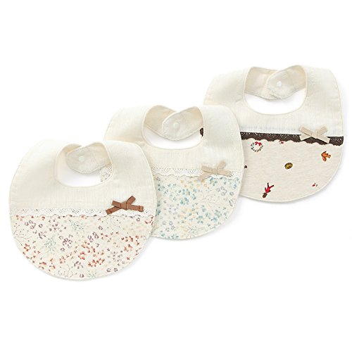 まあるい形のスタイに、レースのフリルとちょこんとしたリボンがとてもキュート゚*☆上品な花柄が、赤ちゃんのお顔まわりを華やかに演出します*.・♪ギフトのプラスワンにもおススメ♪♪
