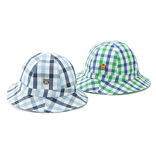 夏らしい爽やかなチェックが特徴のハットタイプの帽子♪サイドにはくーたんとライオンくんの刺繍がポイント☆