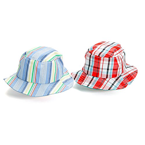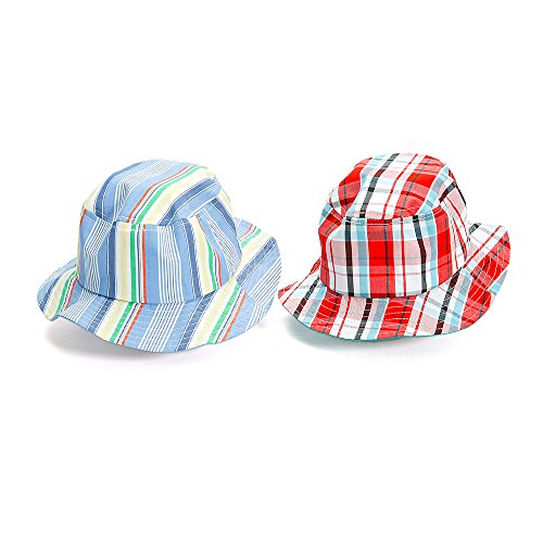 シンプルなハットをチェック柄とストライプ柄で演出☆ポップなイメージが楽しめる帽子にしました*・゚つばの大きい帽子は紫外線対策や熱射病予防に欠かせない夏の必需品!お洗濯も可能です☆