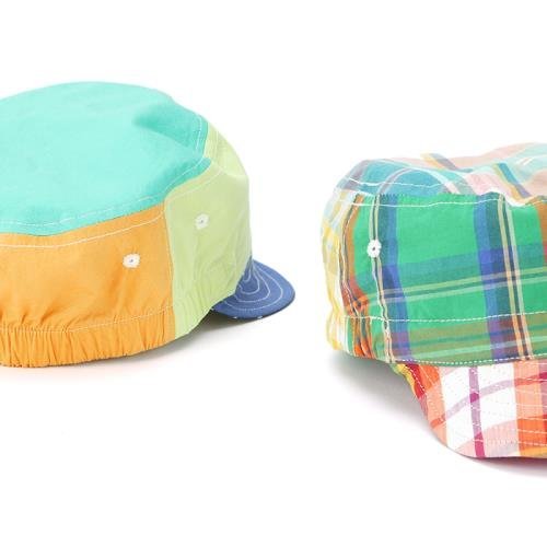 - 素材:キミドリ・・・無地側本体/綿97%・ポリウレタン3%、柄側・・・つば部分/綿100%、前頭部分/レーヨン100%、後頭部分/ポリエステル83%・綿17%、頭頂部分/ポリエステル93%・ポリウレタン7% オレンジ・・・無地側本体/綿97%・ポリウレタン3%、チェック側・・・本体/綿100%、つば部分/綿84%・レーヨン16%