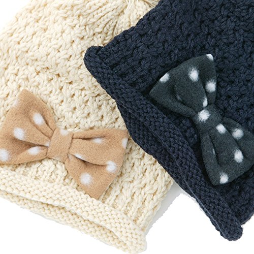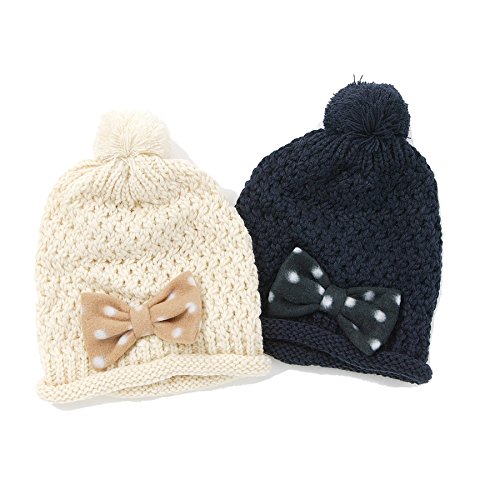 寒い季節のお出かけに、持っておきたい必需品☆シンプルなニット帽に大きなドットのリボンをつけて☆゚+.シック&チャーミングな2色展開です☆