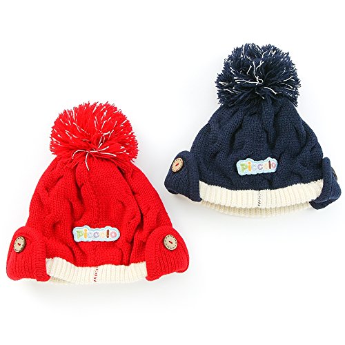 おおきなポンポンがポイント!!あたたかいローゲージニットの裏にはフリース生地使用で防寒もばっちり◎ ボタンをはずせば耳あて部分を下ろせるので、寒い日にもかわいさいっぱい☆☆☆