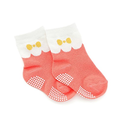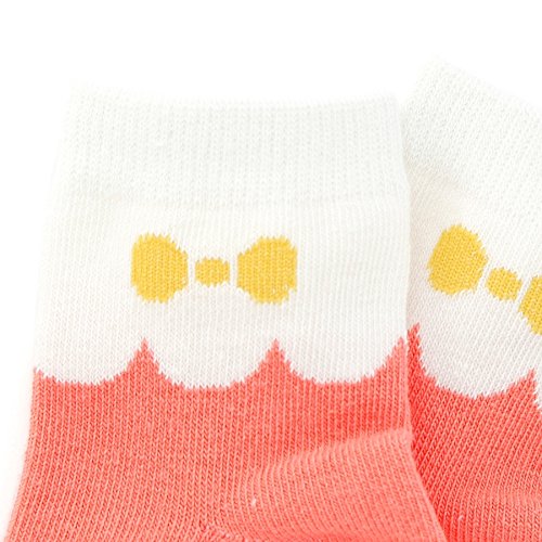 ビビットなオレンジソックスは リボン柄ジャガードにスカラップのバイカラーがキュートです。