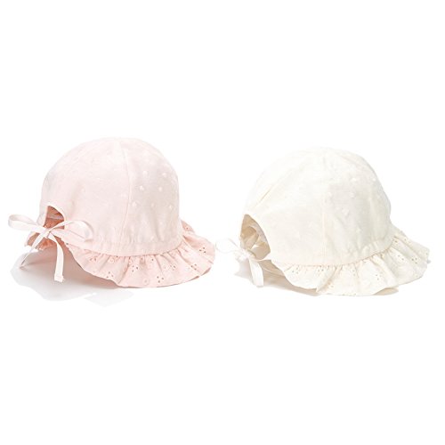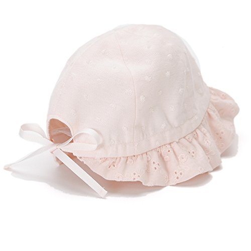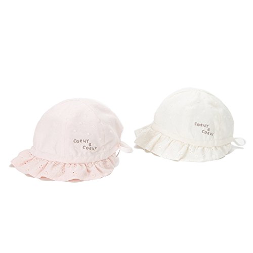 可愛らしいドットジャガードに、ツバ部分にはレースをあしらった、上品で女の子らしい帽子゚*☆やわらかく肌触りの良い素材で日差しからデリケートな赤ちゃんの頭をやさしくつつみます*。♪うしろのリボンでサイズ調節が出来るのでとっても便利*・゚