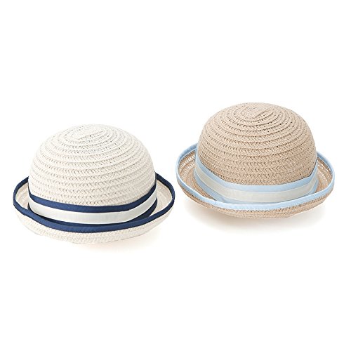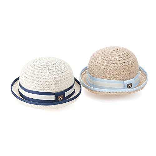 軽い素材が特徴の麦わら風帽子♪軽く曲げれるので、持ち運びにも便利です☆★通気性にも優れ、汗っかきのお子様でも平気です☆マリンな雰囲気のテープ使いがポイント(*^_^*)