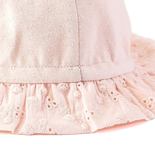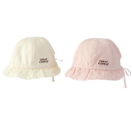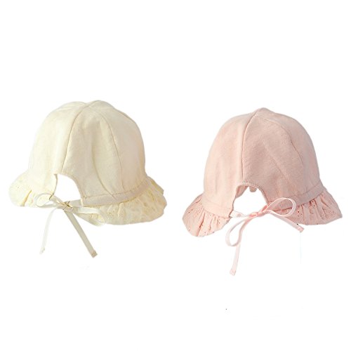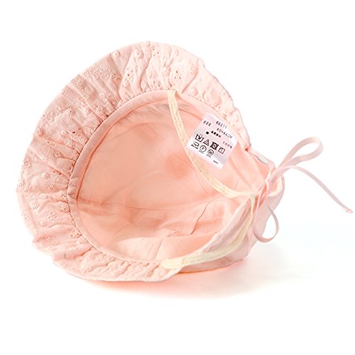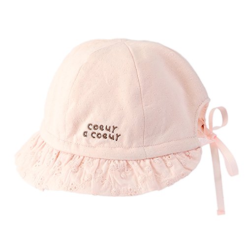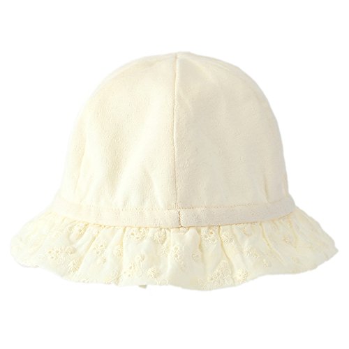 さわやかな天竺素材に、つば部分にはレースをあしらった上品で可愛らしい帽子♪後のリボンでサイズ調節が出来るのでとっても便利♪やわらかく肌触りの良い素材で日差しからデリケートな赤ちゃんの頭をやさしくつつみます♪