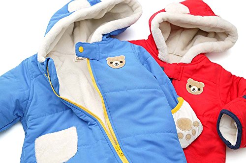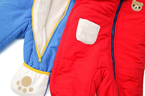 風を通さないピーチ起毛タフタのジャンプスーツ。裏はふわふわで柔らかいボア素材、中わたもたっぷりでとってもあたたかいです♪フードは耳付き♪袖、足口を折り返すと肉球刺繍が施されています♪かわいく防寒ばっちりなアイテムです◎