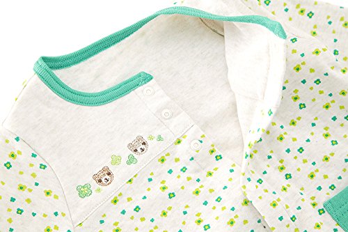 ふわふわで優しい肌触りの接結素材のベンリードレス*.・☆ クローバーモチーフの総柄が優しく爽やかなイメージで赤ちゃんにぴったり♪ 胸のヨークにはくーたんとクローバーの刺繍が上品にあしらわれていて、赤ちゃんをさらに可愛く見せてくれます♪