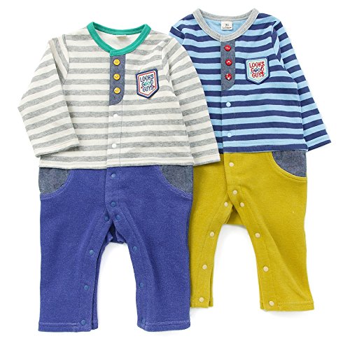 カジュアル感たっぷりの上下セパレート風デザインのカバーオール☆1枚でコーディネートの完成♪冬のマリンボーダースタイルが楽しめるアイテムです☆