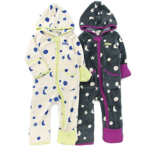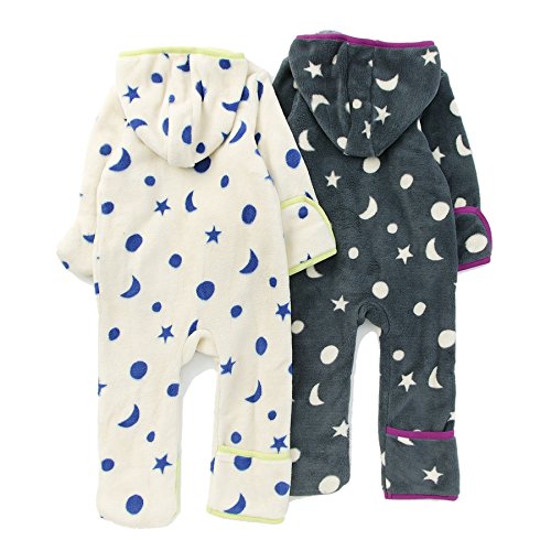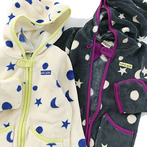 ふわふわの少し毛並のあるフリース素材がとっても気持ち良い゚*☆寒い季節のお出かけに大切な一枚♪袖や裾口はくるりんと折り返すこともでき、ベビーの手足を温かく包みます*・゚月と星のランダム柄は男女問わず着られちゃう♪おそろいコーデも楽しめます☆
