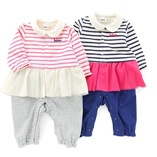 ☆新登場!Bobsonから待望のベビーライン誕生☆ボーダーのカバーオールは、チュールスカート付きでワンピースコーディネート風に♪♪白い衿も可愛らしいガーリーポイント(^^)/