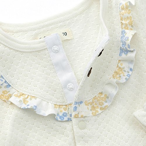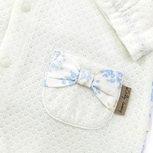 可愛らしい花柄がポイントのカバーオール♪胸元や後ろに花柄のフリル使いで可愛さを演出。ポケットのリボンも忘れずに・・・☆