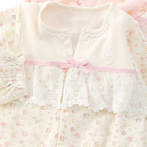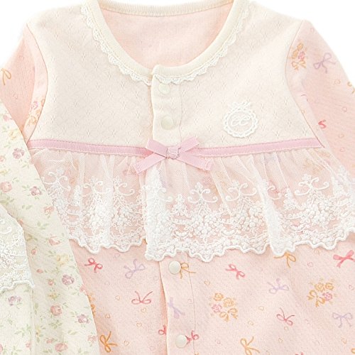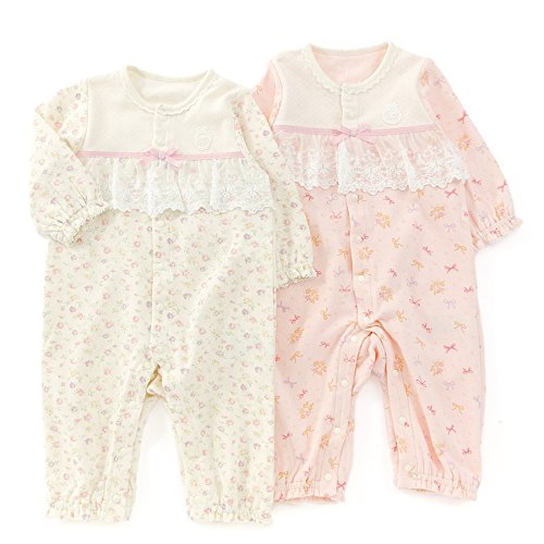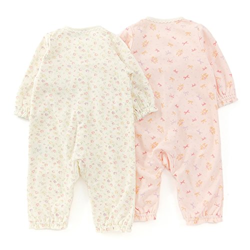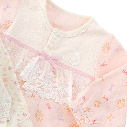 ヨーク切替に華やかなチュールレースが可愛らしいカバーオール♪春らしいお花柄に水彩タッチのリボン柄♪どちらも欲しくなる女の子らしい2柄です♪愛らしいデザインがギフトにもおすすめなアイテムです♪