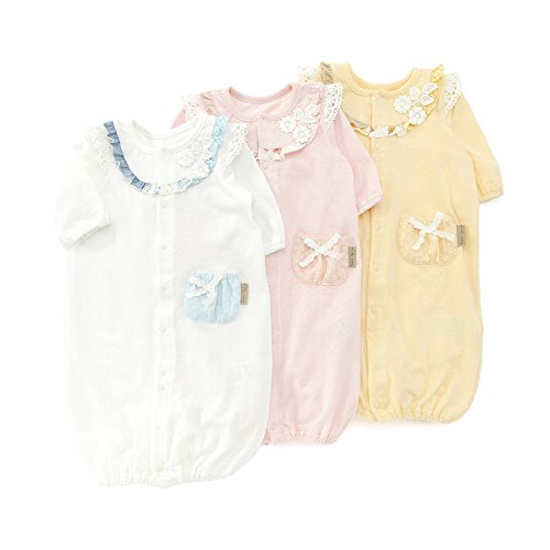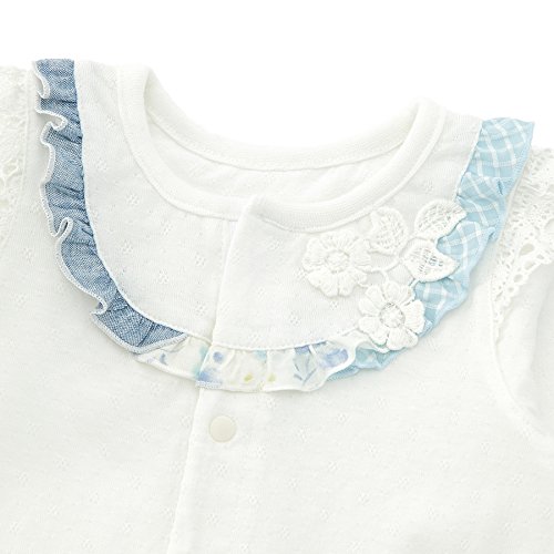胸元に異素材のフリルとお花の可愛いレースをあしらったベンリードレス。赤ちゃん思いのやさしい着心地に、柔らかなメッシュ天竺素材で☆