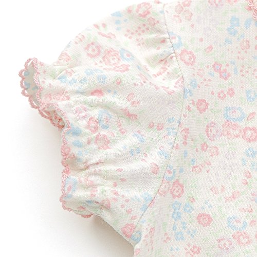 小花柄がラブリーな半袖ボディシャツ♪夏におすすめなさらっとした天竺素材で、肌触りも柔らかく赤ちゃんにもやさしい(*^^*)暑い日には一枚でも可愛くお部屋で過ごせます♪夏のベビーにぴったりなアイテムです☆彡