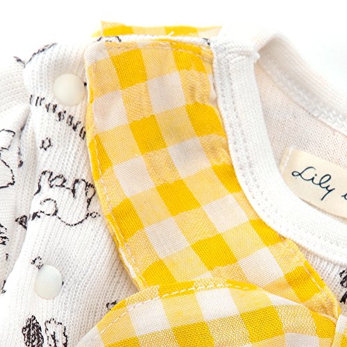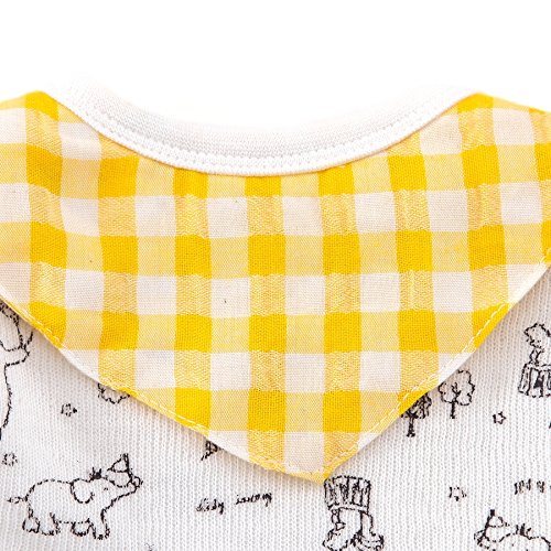 ギンガムチェックのスカーフを巻いた風のトップスにボトムをコーディネートしたようなおしゃれな一枚♪可愛い動物たちの総柄プリントやポケットの刺繍にも注目!