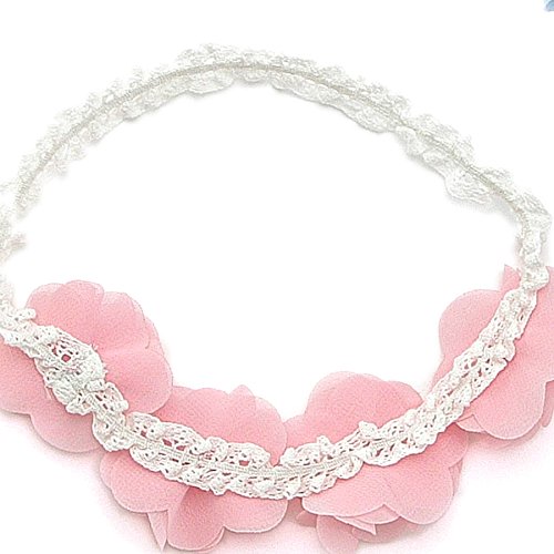 お花をイメージしたヘアーバンド♪柔らかいシフォン素材のお花にストレッチの入ったレースのバンドでとても華やかに(*^_^*)