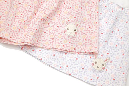 キュートな小花といちご柄、センターのハートボタンがとっても可愛らしい綿100%の半袖Tシャツ゚*☆ふんわりパフスリーブやさりげないうさぎちゃんアップリケがキュート*。♪やわらかく肌触りのよいガーゼ天竺素材で着ごこちも優しく、デイリー使いにもぴったりです゚*☆