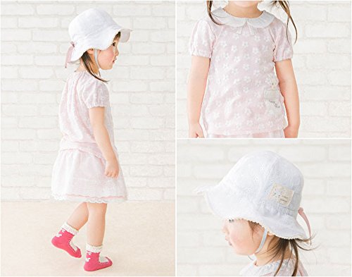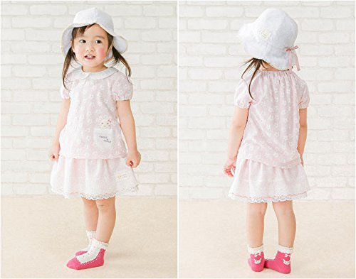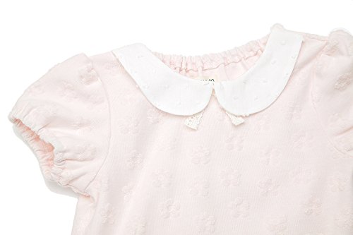 レースの丸えりにお花のジャガード素材がとびきりキュートな半袖Tシャツ゚*☆首もとはゴム仕様でお着替えもラクチン*.・♪ポケットからのぞくうさぎちゃんが何とも可愛い*。♪デイリーアイテムもクーラクールらしく女の子らしいシルエットに*・゚