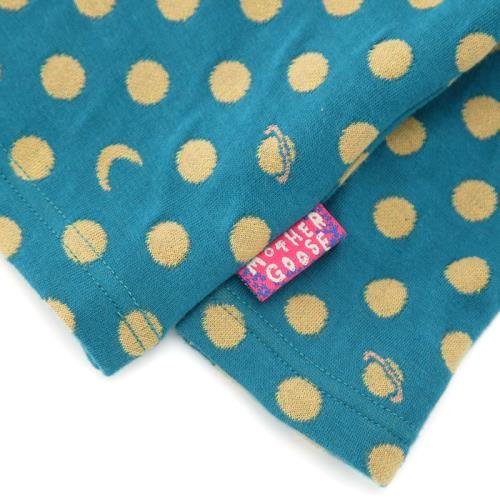 三日月や惑星をプラスしたおしゃれ度の高いドット接結素材は、着心地が柔らか♪配色ポケットに施したメガネ星座の刺しゅうも要チェック!