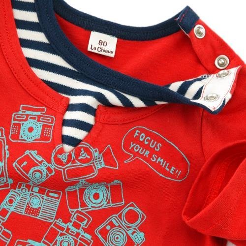 ポップなカラーとカメラモチーフが大活躍!!衿ぐりの切替がカッコいい☆カジュアルなスタイリングには欠かせないアイテムです。