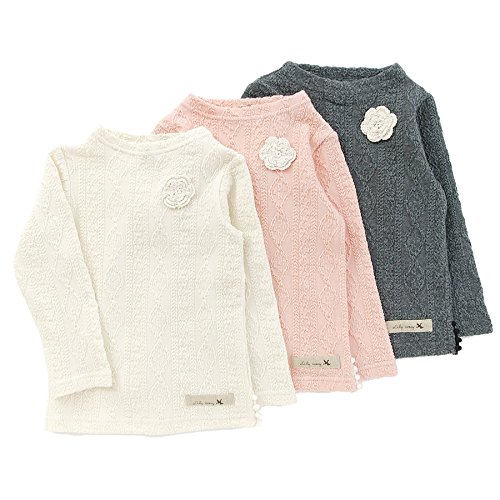 どんなボトムスやチュニックにも合わせやすいケーブル風の柄が入ったジャガード素材のTシャツ゚*☆無地の着まわしやすさも残しつつ、風合いのある生地感がシンプル過ぎず女の子らしい*。♪裾のレース使いやお花の編みモチーフがさりげないアクセントに♪♪