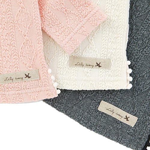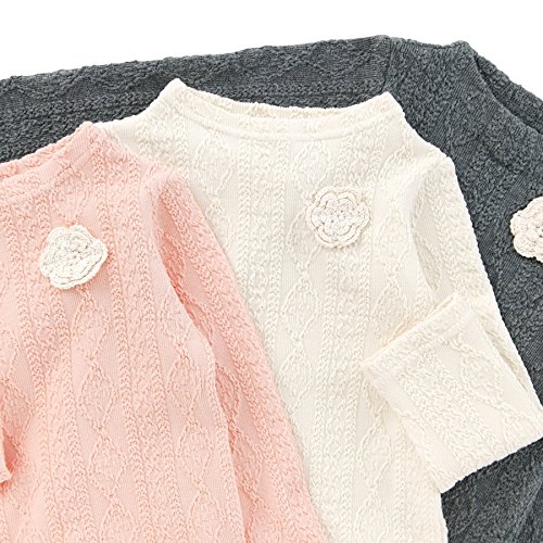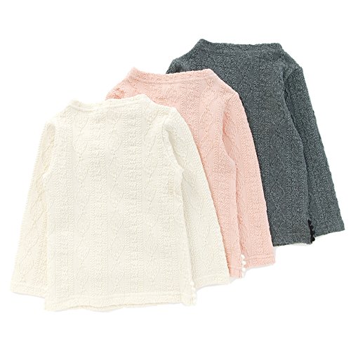 どんなボトムスやチュニックにも合わせやすいケーブル風の柄が入ったジャガード素材のTシャツ゚*☆無地の着まわしやすさも残しつつ、風合いのある生地感がシンプル過ぎず女の子らしい*。♪裾のレース使いやお花の編みモチーフがさりげないアクセントに♪♪