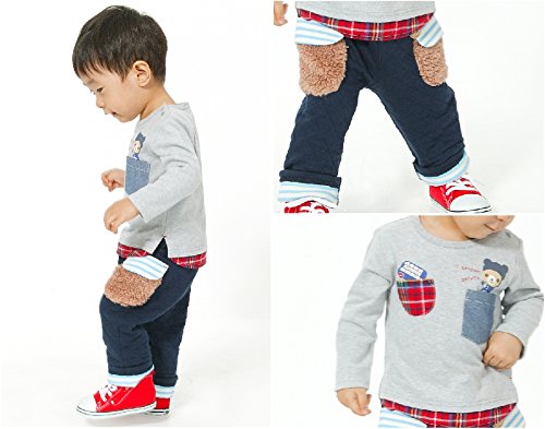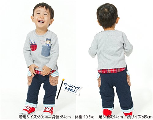 ポケットから飛び出した兵隊さんくーたんとロンドンバスがかわいい、起毛素材の長袖Tシャツ♪裾やポケットにチェック生地が使用されているので、同じチェックを使用したアイテムと合わせても◎