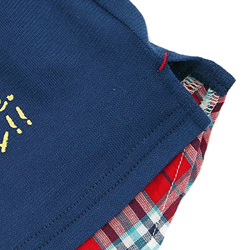ロゴプリントに部分使いのアップリケがポイントのTシャツ☆くーたんがレモネードを飲んでるよ♪裾のチェックと同じチェックを使ったアイテムとも相性◎