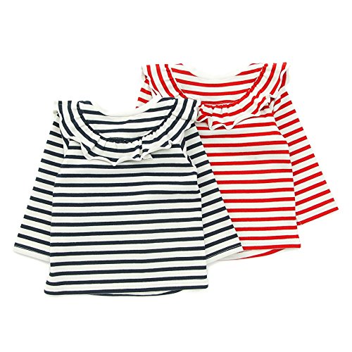 ☆ママとおそろい♪リンクコーデ☆衿元の大ぶりのフリルがキュートなTシャツ♪クセのないボーダーなので、デイリーアイテムに最適です!同じ素材・お値段で、ママサイズもご用意しています♪気軽にリンクコーデを楽しんで☆