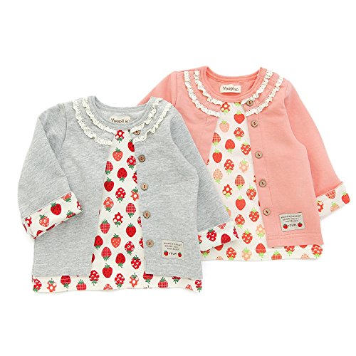 色んないちごが沢山入った総柄いちごプリントTシャツにカーディガンを羽織らせた重ね着風アイテム!可愛くて便利なお得な1枚です♪